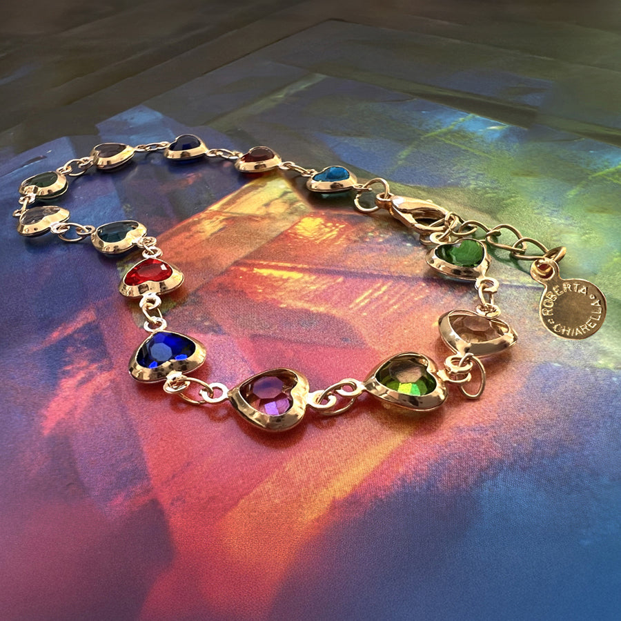 - Amore Infinito Bracelet Sparkle solo or layer it with your favorites—this vibrant crystal strand is pure joy on your wrist. Each crystal catches the light with a rainbow of color, creating that irresistible shimmer that makes you smile every time you glance down. Whether you're going minimal or stacking for maximum glam, this beauty plays well with others and shines just as bright on its own. Sweet, colorful, and endlessly versatile.
